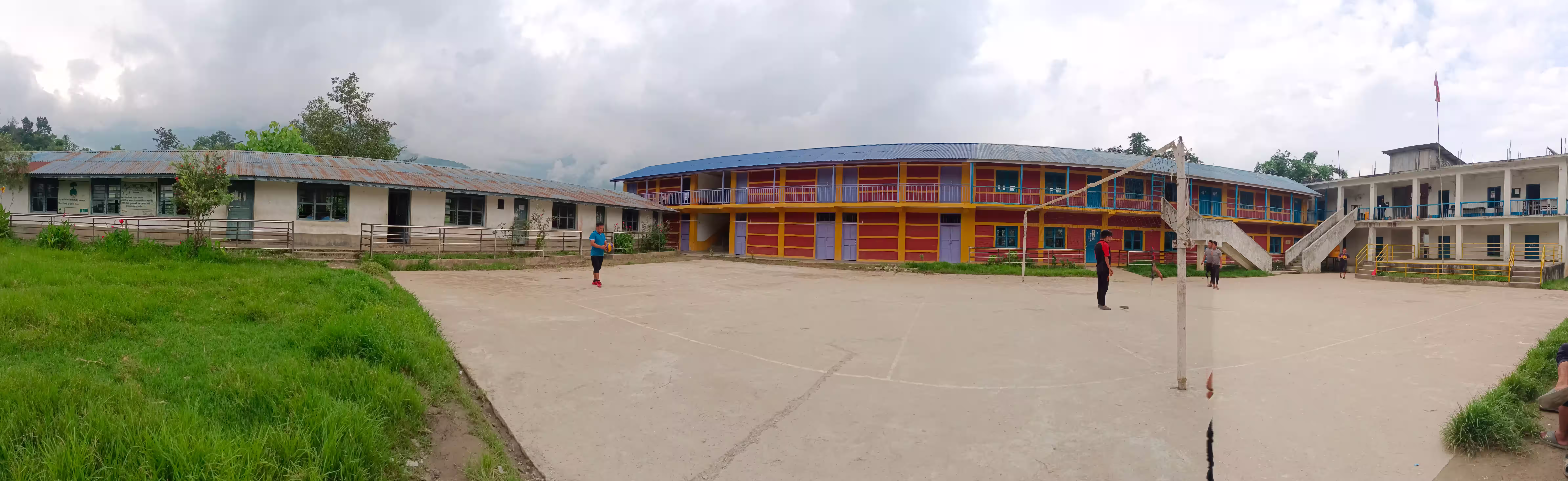 २०१६ सालमा जिल्ला विकास वोर्ड धनकुटाबाट विद्यालय भवन वनाउन भनी प्राप्त सहायता रु. १५००/- र स्थानीय व्यक्तिहरुको श्रमदान समेत गरी जम्मा रु. ३०००/- को लागतमा सायम्वाहाङ्ग धर्मशालापाटीको छेउमा राखिएको जगेडा जग्गामा २०१७ सालमा ढुङ्गाको गारो भएको उत्तरतिर फर्केको तीन तले भवन निर्माण गरियो । २०१७ साल पौष १६ गते सायम्वाहाङ्ग धर्मशालापाटीमा संचालित विद्यालयलाई नयाँ भवनमा स्थानान्तरण गरी संचालन गर्न शुरु गरियो । तत्कालिन विद्यालय सेक्रेटरीको पहलमा २०१७ साल फाल्गुण १७ गते तत्कालिन श्री ५ को सरकार शिक्षा मन्त्रालय माध्यमिक उपशाखाबाट मिडिल स्कुल संचालन गर्न मिडिल स्कुलको स्वीकृति प्राप्त भयो । सरकारी स्वीकृति प्राप्त भएपछि रु. ९००/-, रु. १२००/-, रु. १५००/- र रु. ३२००/- सरकारी आर्थिक सहयता क्रमशः प्राप्त हुदै गयो । २०२६ साल तिर विद्यालय आई पुग्दा विद्यालयमा क्ष्ब् पास गरेको योग्यता प्राप्त शिक्षकको अभावमा तत्कालिन अञ्चल शिक्षा अधिकारीबाट सरकारी अनुदान रोक्का भयो । तत्कालिन अवस्थामा क्ष्ब् पास गर्नु भएका श्री हर्कराज चोङबाङ्गलाई सेक्रेटरी नियुक्ति गरी रोक्का भएको सरकारी आर्थिक सहयता पुनः माग गरियो र २०२६ सालमा रोक्का भएको सरकारी आर्थिक सहायता प्राप्त भयो र शिक्षकहरुका बाँकी तलव चुक्ता गरियो । २०२६/१०/२ मा तत्कालिन गाउँ पंचायतको गाउँ सभाले स्थानीय छत्र बहादुर प्रसाईलाएै सेक्रेटरी पदमा नियुक्त गर्यो ।